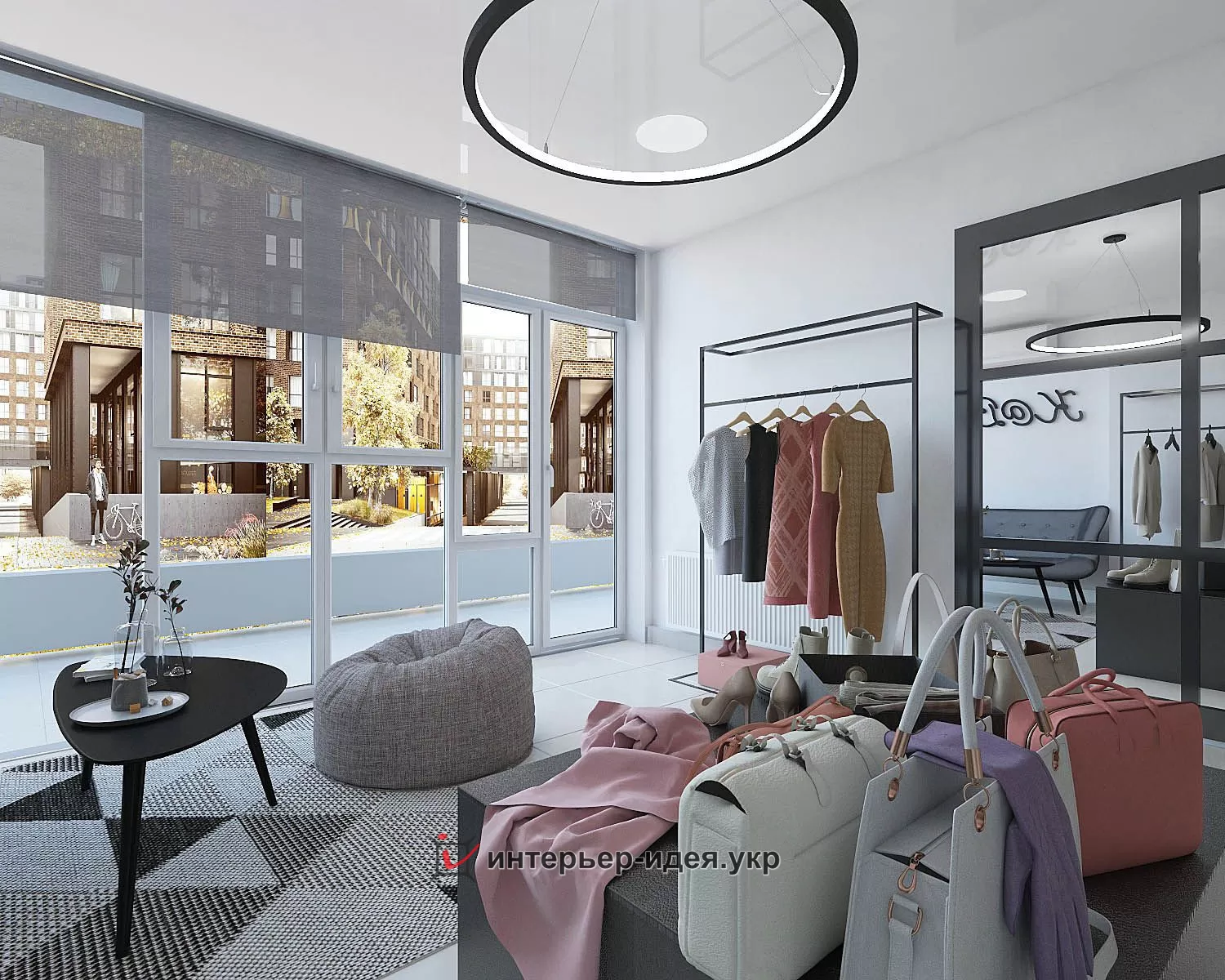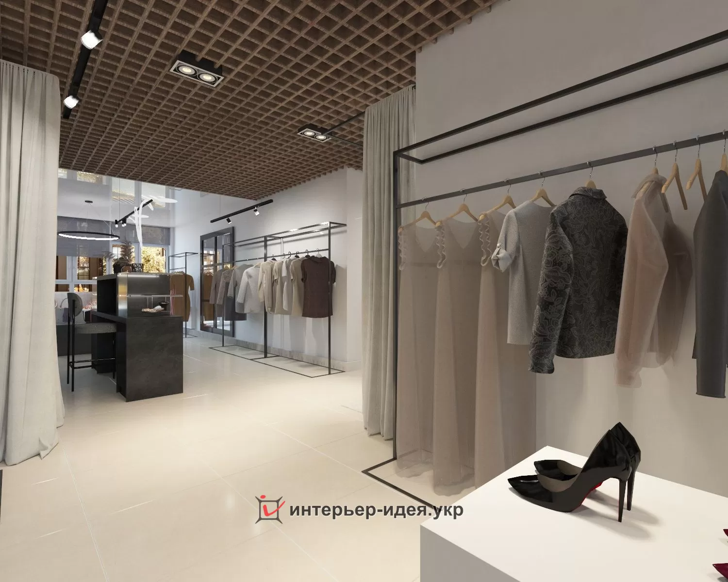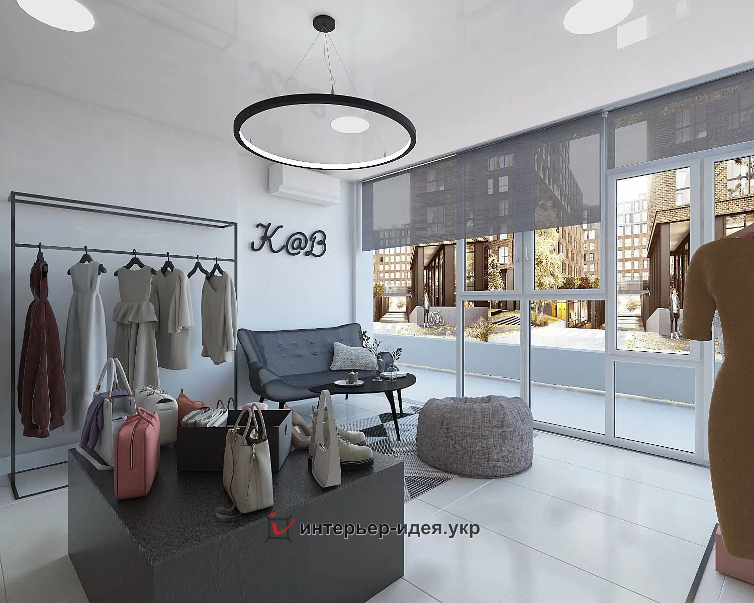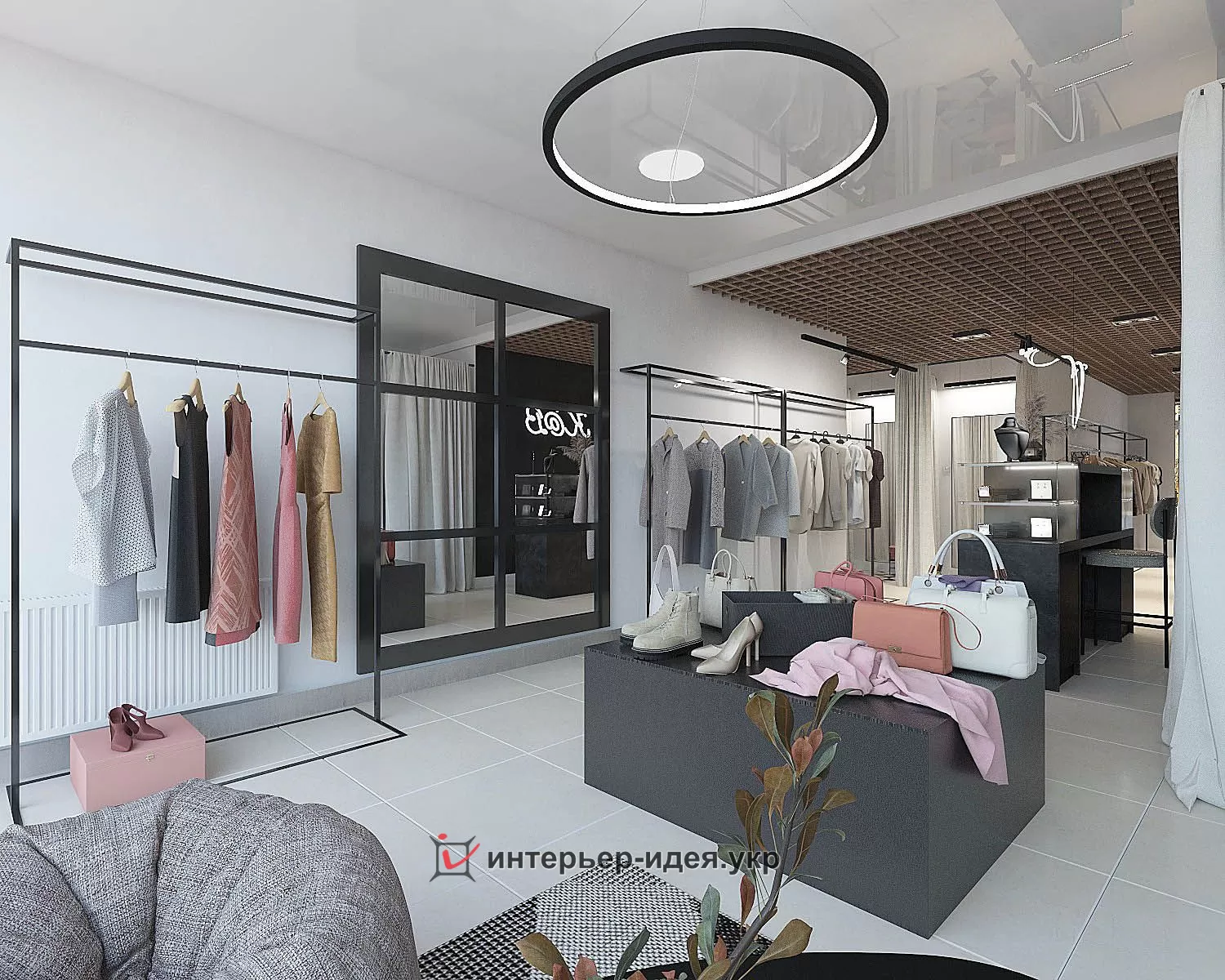 Молода замовниця звернулася з проханням оформити дизайн магазину одягу. Замовниця мала повне уявлення, що їй хотілося б отримати на виході, плюс початкові дані приміщення, яке вона зняла в оренду, відповідали її вимогам