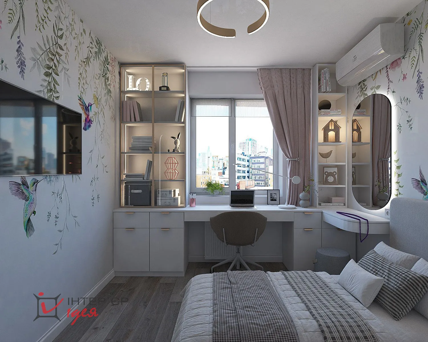 Створення цього інтер'єру стало справжнім викликом: на площі всього 9,2 м ² потрібно було розмістити все необхідне для школярки 7 років і зберегти легкість і затишок.