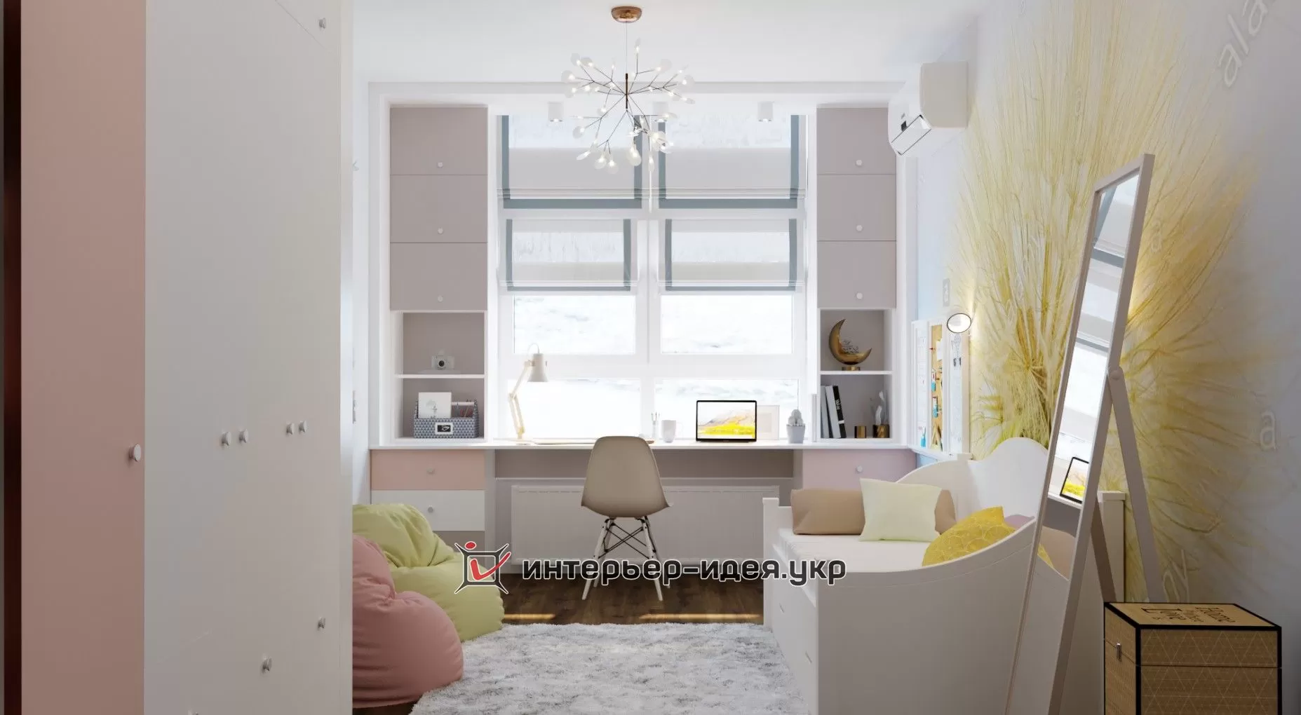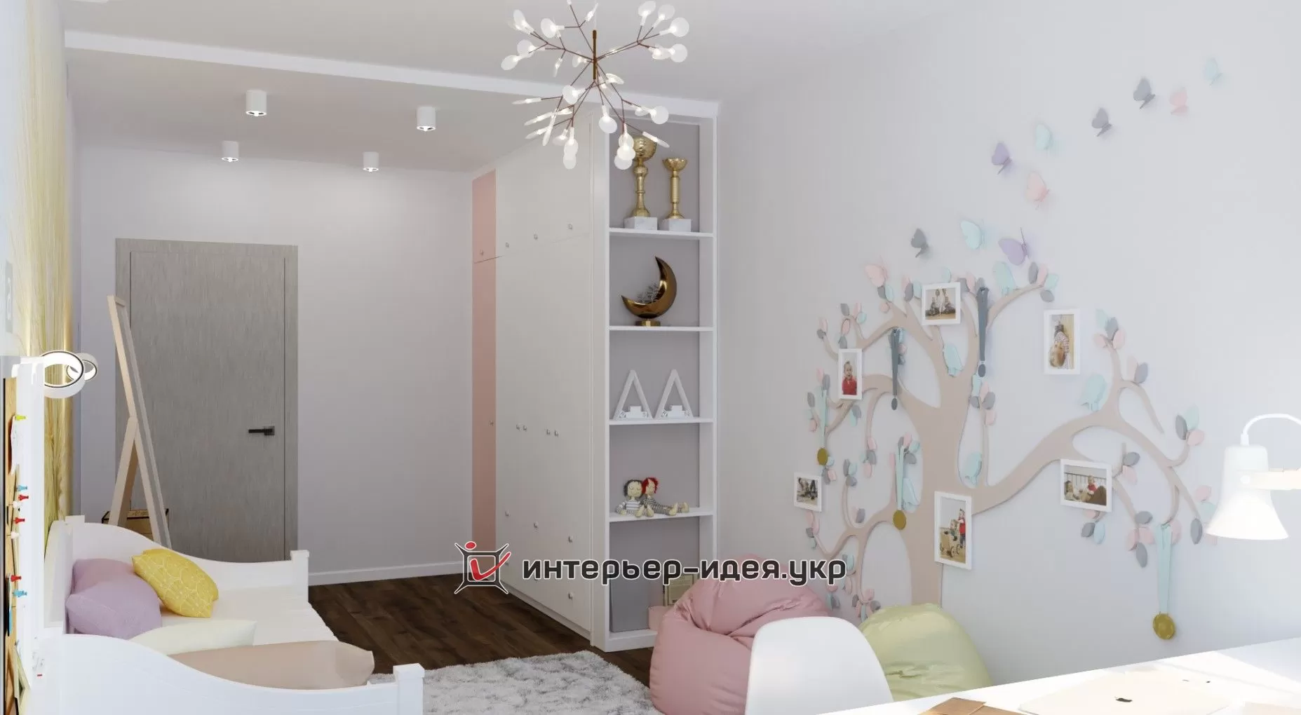 Дизайн-проект дитячої кімнати був зроблений для ніжної і витонченої, але впевнено йдущої до перемог, дівчинки.