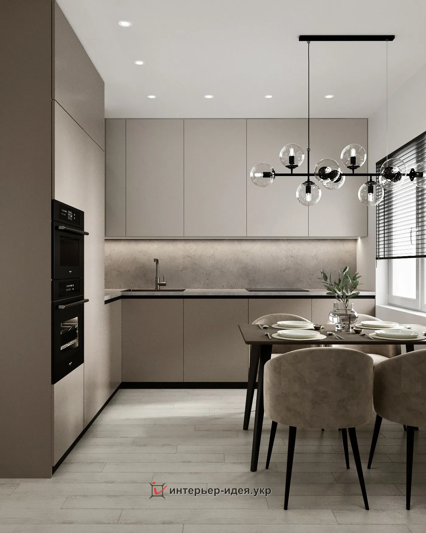 В цілому, кухня та вітальня в сіро-бежевих тонах виглядає дуже елегантно та спокійно. Вона є ідеальним вибором для тих, хто любить сучасний стиль та хоче створити на своїй кухні атмосферу спокою та гармонії.