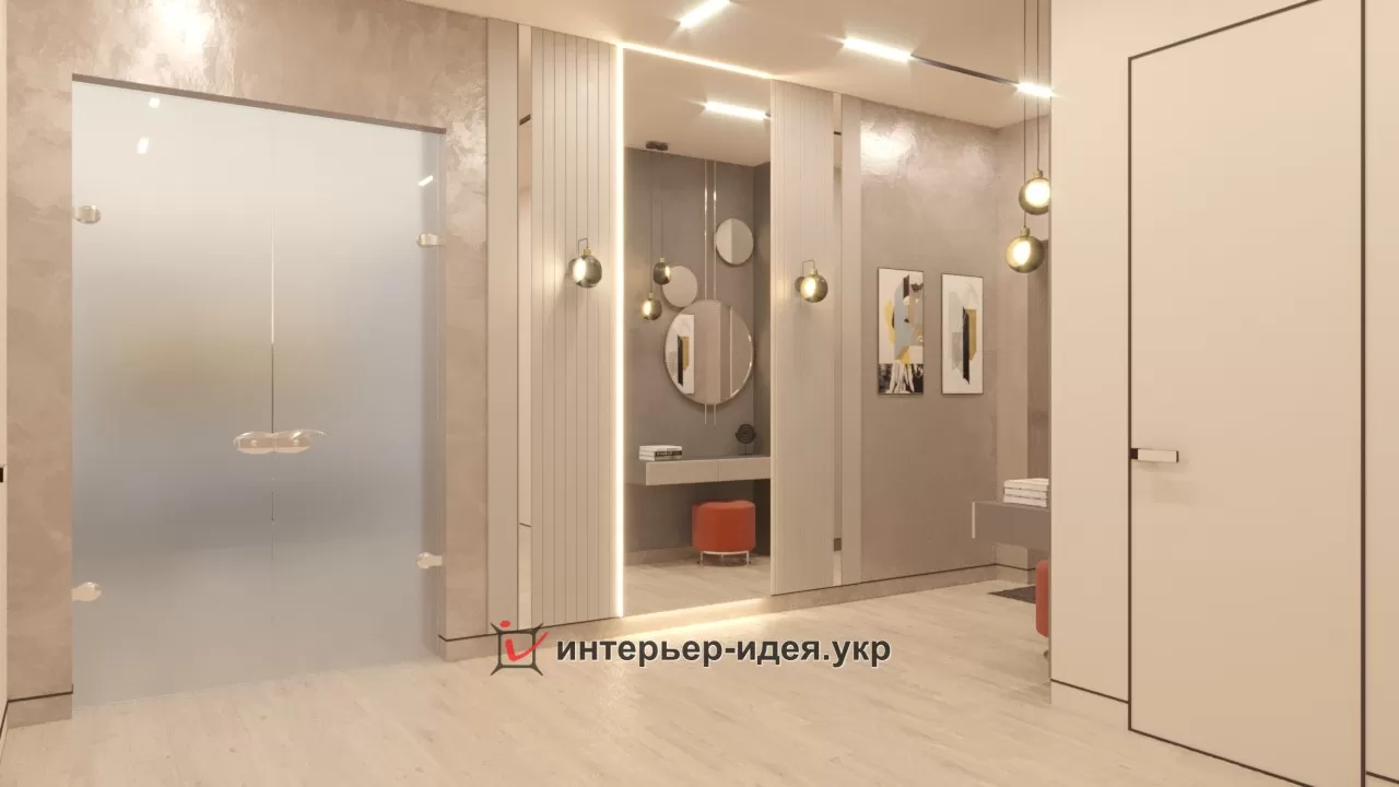А дзеркала і світильники над консоллю додали приємні для ока округлі обриси.