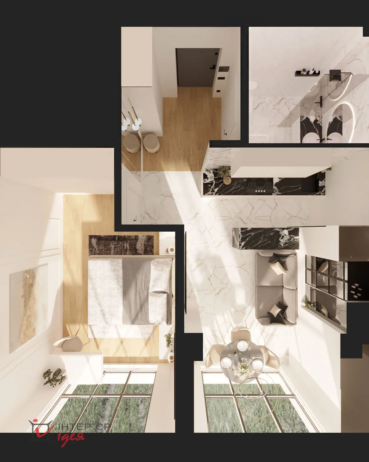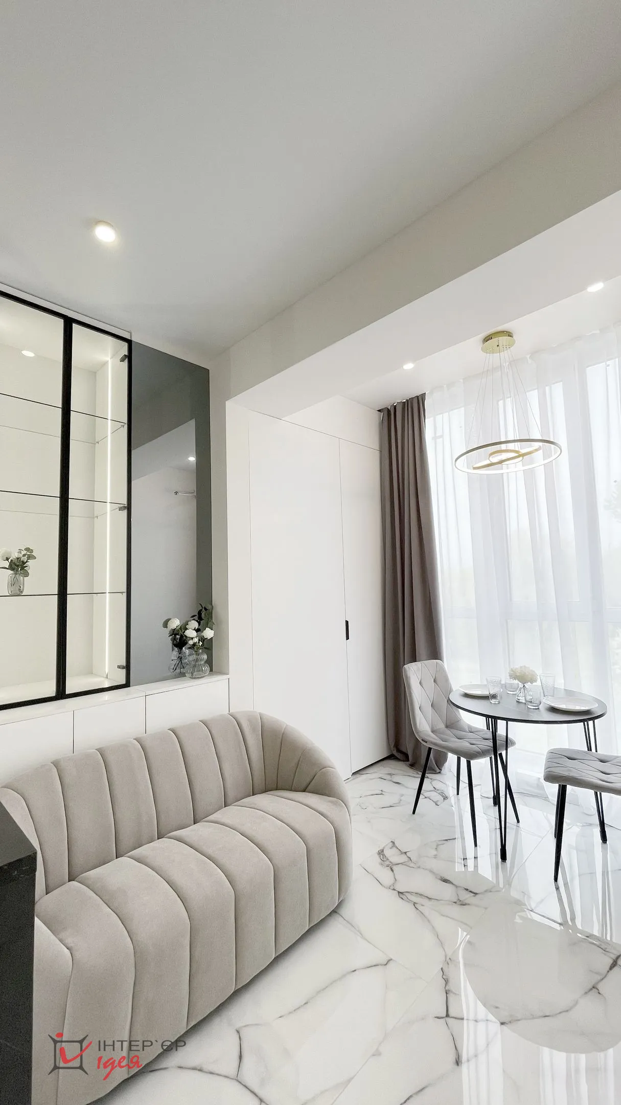 Квартира розташована на березі озера, і завдяки великим вікнам у ній завжди багато природного світла та красивий краєвид. Цей проєкт — приклад того, як навіть у компактному просторі можна створити відчуття гармонії, стилю та комфорту.